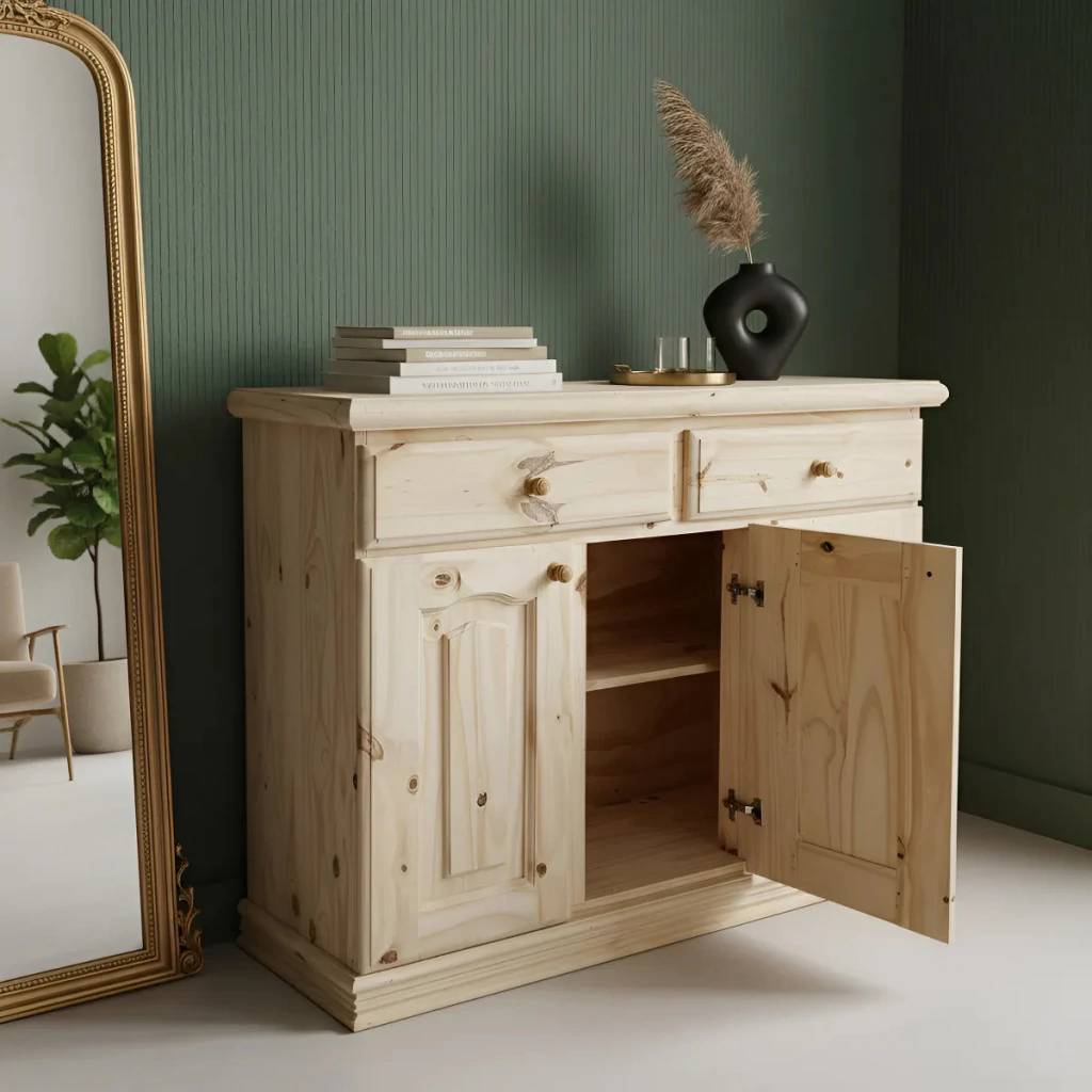 Elaborado en Madera maciza de pino, previamente seleccionada, estacionada y secada a horno.