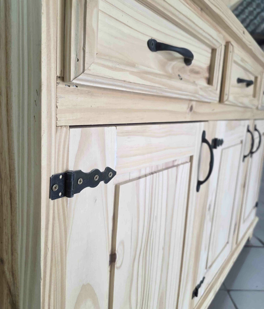 Baiut de pino macizo, con herrajes (bisagras exteriores, y manijas negras)