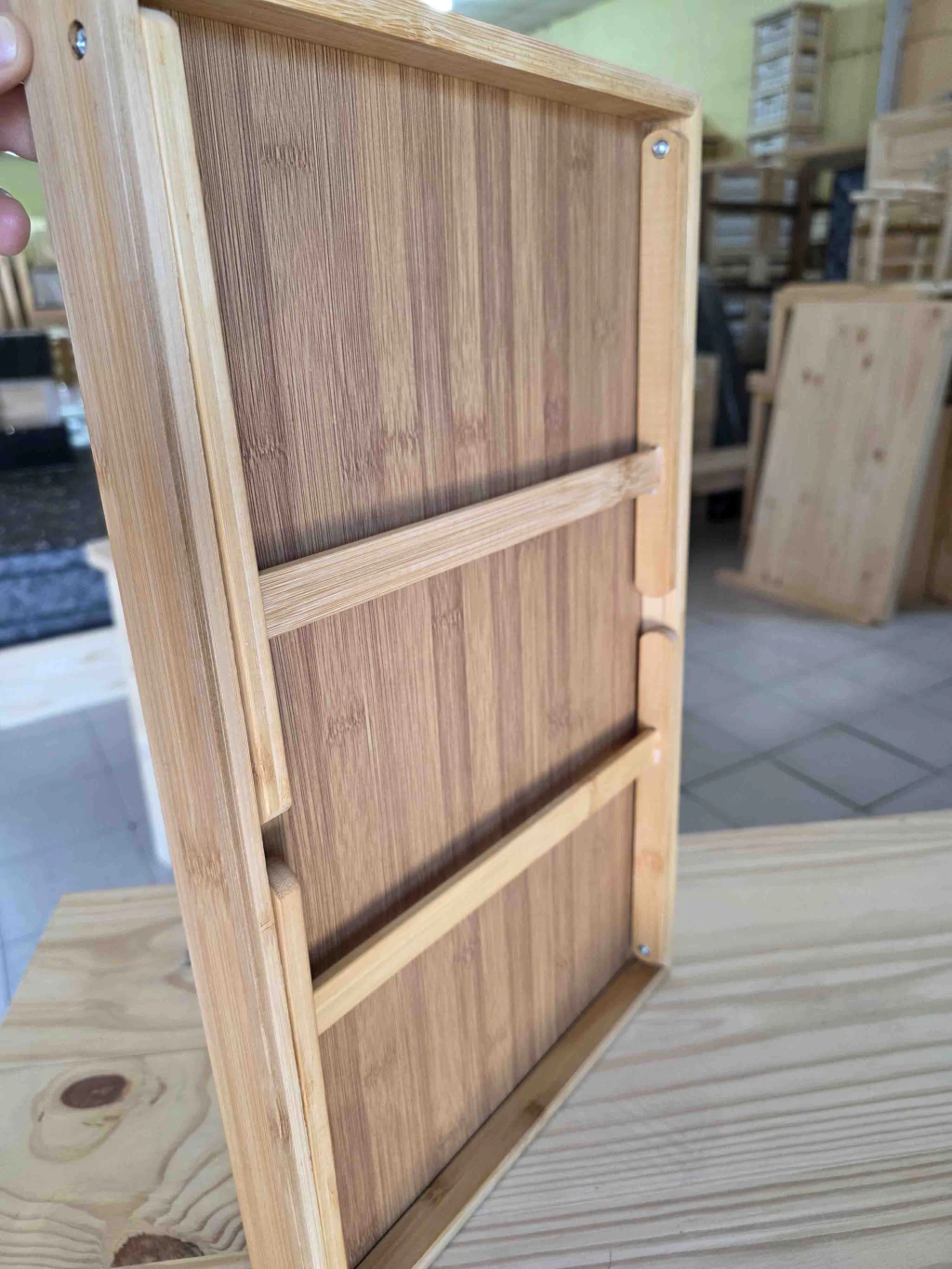 Bandeja para desayunar de madera de pino con las patas plegables