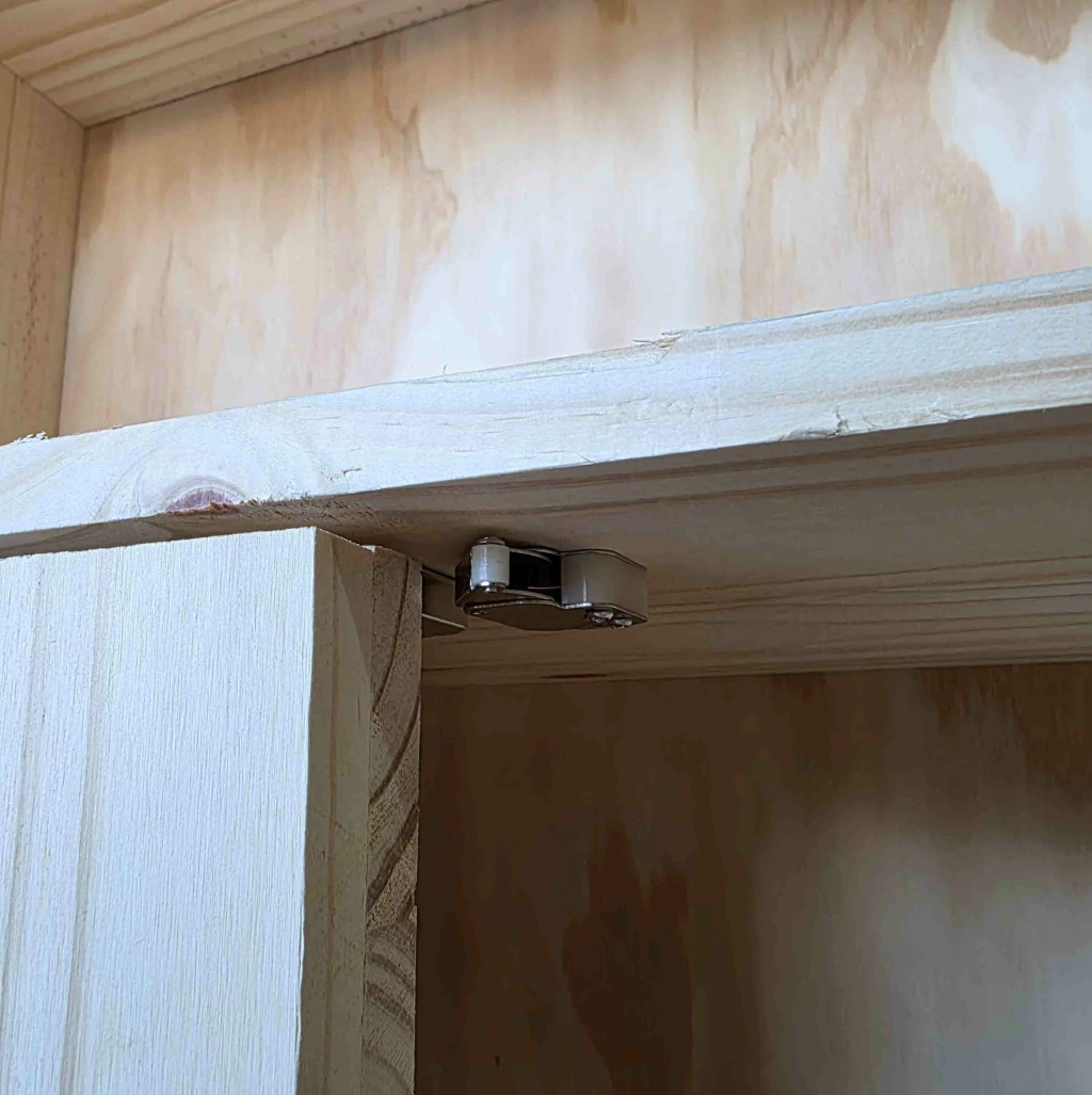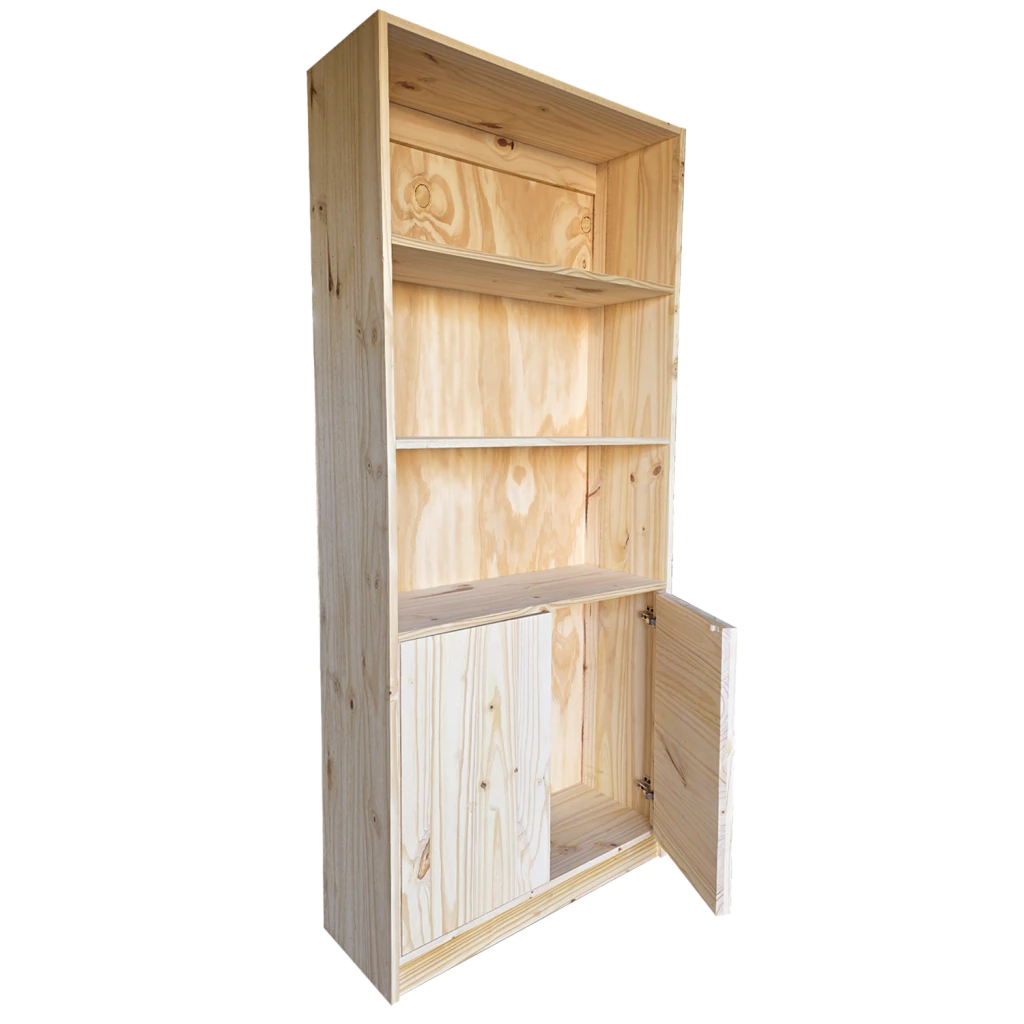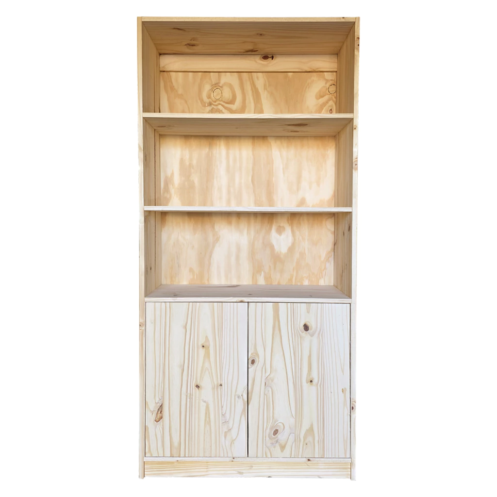 Biblioteca de madera de pino con 2 puertas lisas y sistema PUSH OPEN para abrir las puertas.