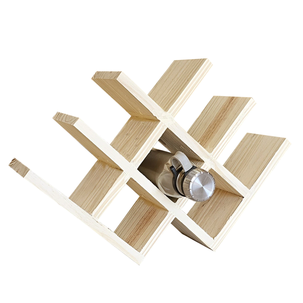 Bodega de pino con forma de W para 8 botellas