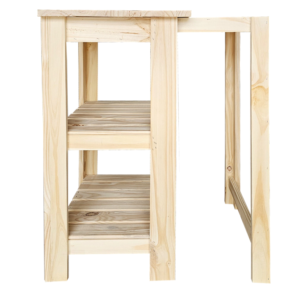 Elaborado en Madera maciza de pino, previamente seleccionada, estacionada y secada a horno.