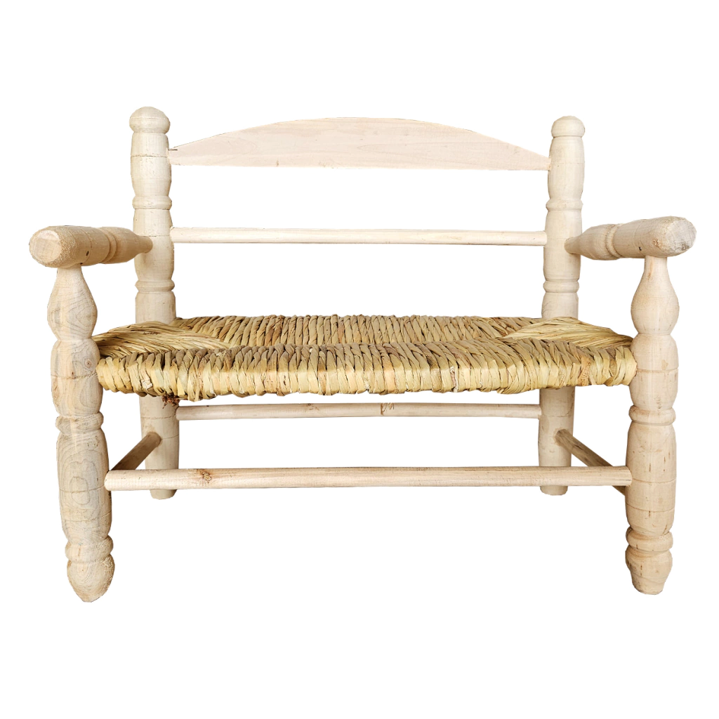 Sillon infantil doble con asiento de junco y apoyabrazos torneados
